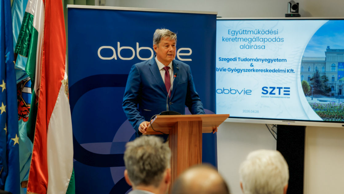 The agreement was signed by Javier Aracil Corma, AbbVie’s Managing Director for the Adriatic region and Hungary, on behalf of AbbVie, and by Dr. Judit Fendler, Chancellor, and Prof. Dr. László Rovó, Rector, on behalf of the University of Szeged. The goal of the partnership agreement is to further develop strategically important clinical research related to innovative therapies and, in the long term, to strengthen the competitiveness of Hungary and the region.